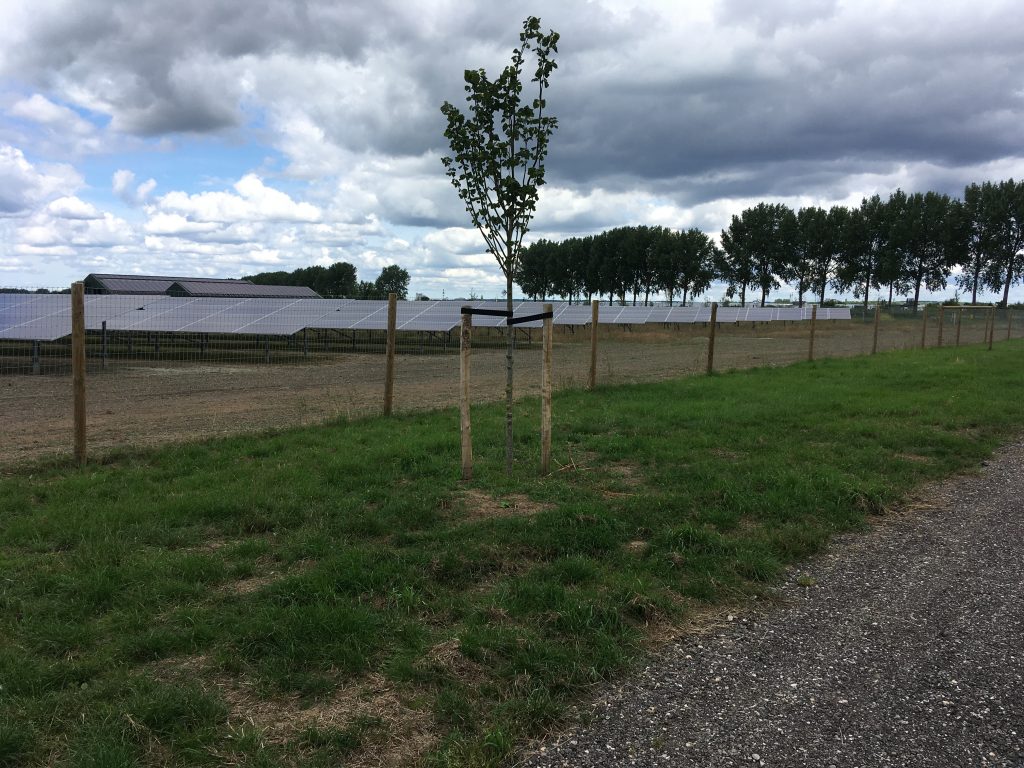 Door het planten van nieuwe hagen, singels en knotbomen en het begroeien van hekwerk kan het zicht op de zonnepanelen weggenomen worden. Deze beplanting kwam in dit gebied vroeger ook voor, waardoor zo een bijdrage geleverd kan worden aan het herstellen van het oorspronkelijke landschap, dat niet op grootschalige landbouw was ingericht. Door de panelen lager te plaatsen, blijft de weidsheid ook behouden doordat er overheen kan worden gekeken.